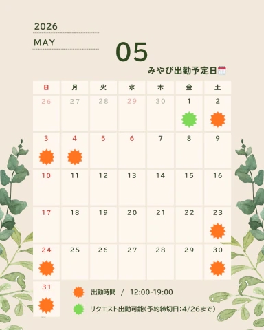 HPでは2週間分のスケジュールのみ掲載してますが、先の予定についてもお気軽にお店やオキニトークでご連絡いただけると嬉しいです🙌💕