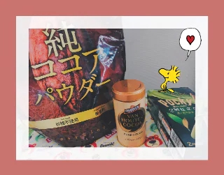(主役のココア横にある抹茶のPockyは、またまた入ったスーパーでセールしてたので迷わず自分へのご褒美で買ったものです。笑)
