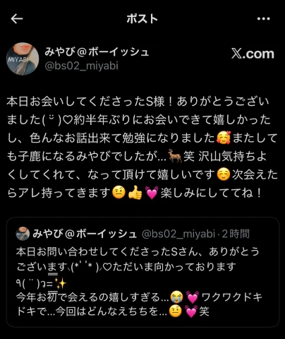 X(@bs02_miyabi)みやびプロフィールを見る