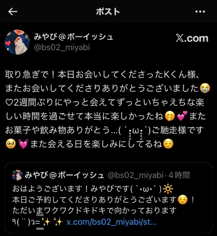 こんばんは!みやびです( ¨̮ )🌟【11/16 12時00分〜お会いしたKくん様へ】
